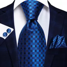 Use our battle tested marketing materials for Navy Blue Striped Silk Necktie Set with Handkerchief and Cufflinks