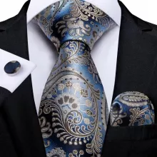 Use our battle tested marketing materials for Blue Champagne Paisley Silk Necktie Set with Hanky & Cufflinks