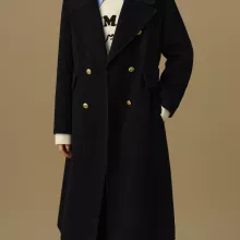 Use our battle tested marketing materials for Women's Long Navy Blue Woolen Double Breasted Winter Coat with Big Turn-down Collar