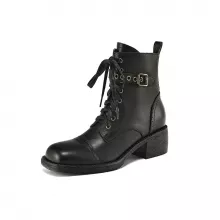 Use our battle tested marketing materials for Genuine Leather Chunky Heel Lace-Up Ankle Boots with Zipper