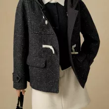Use our battle tested marketing materials for Women’s Winter Hooded Wool-Blend Short Coat with Horn Button Closure