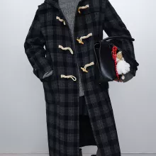 Use our battle tested marketing materials for Women's Navy Blue Plaid Wool Coat with Hood