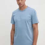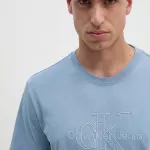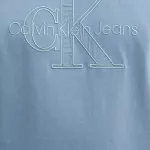 Elevate your casual wear with the Calvin Klein Jeans Men's Light Blue Cotton T-Shirt, a perfect choice for adding sophistication to your everyday look. Designed for the modern man, this T-shirt combines simplicity with premium quality, making it a versatile addition to your fall and winter wardrobe. The soft light blue hue offers a fresh take on classic style, while the round neckline and short sleeves provide a relaxed, comfortable fit.