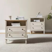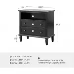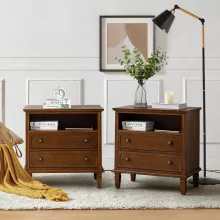 Made with a sturdy manufactured wood frame and solid wood legs, these nightstands are built to last. The high-quality materials provide a reliable surface for everyday use while adding a sophisticated touch to your room. Measuring 15 inches deep, 28.25 inches wide, and 27.25 inches high, they fit perfectly in most spaces without compromising on storage or functionality.