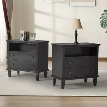 Each nightstand is equipped with two spacious drawers and an open shelf, making it perfect for storing and displaying your essentials. Keep books, alarm clocks, or decorative items within easy reach while tucking away other items like remotes or personal belongings in the smooth-gliding drawers. The open shelf is ideal for devices or CPAP/BiPAP equipment, offering both convenience and accessibility.