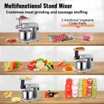 - 6-in-1 Functionality: Equipped with attachments for dough kneading, whipping, meat grinding, sausage stuffing, and vegetable slicing, making it a complete kitchen tool.