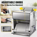 This bread slicer is engineered for efficiency and precision. Its sharp blades ensure clean, uniform slices, while the durable stainless steel construction stands up to heavy use in commercial settings. The adjustable knobs add versatility, allowing you to customize slice thickness and loaf size. It’s not just a slicer – it’s a reliable partner for your kitchen needs.