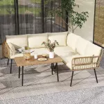 Bring style, comfort, and versatility to your outdoor space with this 4-piece Patio Furniture Set. Designed with a modern aesthetic and made from all-weather PE rattan, this sectional L-shaped sofa is perfect for creating a relaxing retreat on your patio, deck, or garden. Whether you're hosting friends or enjoying a quiet evening with family, this set offers the perfect blend of durability, elegance, and plush comfort.