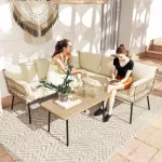This patio furniture set stands out with its adaptable layout and luxurious comfort. The combination of modern design and premium materials ensures a chic look that complements any space, while the weather-resistant rattan guarantees lasting durability. Its versatility allows it to move seamlessly from outdoor patios to indoor lounges, making it the ultimate choice for stylish relaxation.