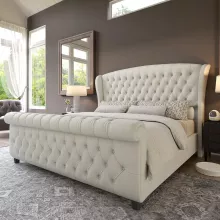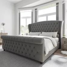 Use our battle tested marketing materials for King Size Chenille Upholstered Sleigh Bed Frame with Scroll Wingback Headboard