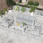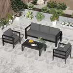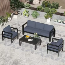 Upgrade your outdoor oasis with this stunning 4-piece aluminum patio furniture set. Designed for both comfort and style, this modern sectional sofa set is perfect for relaxing with family, hosting friends, or simply enjoying a quiet moment under the open sky. Its sleek, lightweight aluminum frame and plush, high-density cushions bring sophistication and luxury to any outdoor setting.