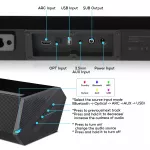 Upgrade your home audio experience with this 2.1 channel soundbar and subwoofer system. Designed for TVs, gaming setups, and PCs, it delivers powerful, crystal-clear sound with enhanced bass. Whether you’re watching movies, playing games, or streaming music, this soundbar’s wireless Bluetooth connectivity and advanced sound modes ensure every detail is brought to life. Compact and versatile, it’s the perfect addition to any space.