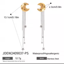 Crafted from stainless steel and coated with 18K PVD gold plating, these earrings are built to last. The anti-scratch and waterproof design ensures their brilliance stays intact for years to come. Hypoallergenic and free from harmful chemicals, they are safe and comfortable for all-day wear. Weighing just 12.7g, they offer lightweight elegance without compromising on style. The celestial charms are intricately designed to reflect the beauty of the night sky, making them a standout addition to your accessories.