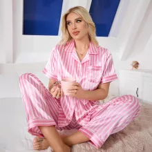 This pajama set is not just about good looks—it’s designed with your comfort in mind. The silky satin material feels indulgent, making it perfect for unwinding after a long day. Its lightweight yet durable fabric ensures a snug fit that doesn’t compromise on breathability or style. The leopard print adds a bold yet feminine touch, making you feel confident and chic, even at home.When to Wear