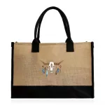 This tote bag is thoughtfully designed to accommodate your everyday essentials. Its generous size of 16.5 inches by 12.6 inches with a depth of 5.7 inches provides ample storage for books, groceries, or travel items. The rectangular shape and open-top design offer easy access, while the durable canvas and jute construction make it a long-lasting addition to your accessory collection. The waterproof finish ensures your belongings stay safe, no matter the weather.