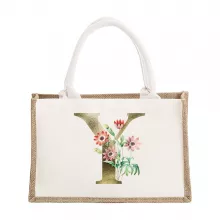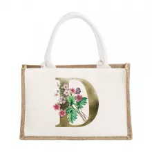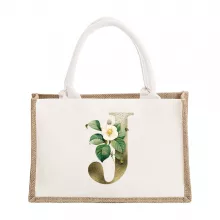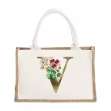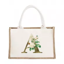 Use our battle tested marketing materials for Golden Letter Print Jute Canvas Tote Bag – Eco-Friendly Personalized Gift