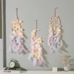Bring serenity and beauty to your home with this stunning Moon Dream Catcher Feather Wind Chime. Hand-woven with intricate details, this elegant piece is adorned with delicate feathers and a glowing LED light, creating a mesmerizing ambiance. Perfect for bedrooms, living rooms, or as a heartfelt gift, this dream catcher adds a touch of charm and tranquility to any space. Whether you’re celebrating a birthday or decorating for a festival, this handcrafted ornament is a beautiful way to express love and style.