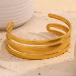 Make a statement with this stunning three-layer cuff bracelet. Designed with a sleek, wide face and an intricate opening, this bracelet combines modern style with timeless elegance. Crafted from durable 316L stainless steel and plated with luxurious 18k gold, it’s the perfect accessory to elevate any outfit, whether you're dressing up for a night out or adding a touch of sophistication to your everyday look.