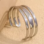 Whether you're looking to add a touch of glam to your office attire or seeking the perfect accessory for a weekend brunch, this wide cuff bracelet is versatile enough to complement any style. The trendy three-layer design adds a modern twist to a classic cuff, making it suitable for both casual and formal occasions. Wear it alone for a bold statement or stack it with other bracelets for a layered, fashionable look.