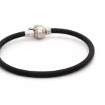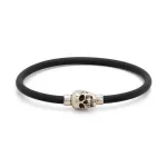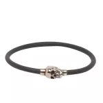 This bracelet is made with premium polished rubber, offering both comfort and durability. The central pendant showcases the iconic Alexander McQueen skull motif, crafted in silver for a striking contrast against the dark band. Measuring approximately 7.5 inches, the bracelet fits snugly while maintaining a lightweight feel, making it ideal for all-day wear. Its minimalist yet edgy design makes it a versatile piece for a variety of occasions.