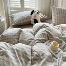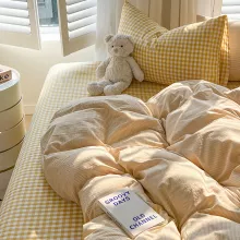 Use our battle tested marketing materials for Classic Plaid Bedding Set Grey Pink Duvet Cover, Pillowcases & Bed Sheet