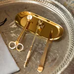 Featuring a candle snuffer, wick trimmer, hook, and matching tray, this set ensures your candles burn evenly, last longer, and remain free of soot or excess smoke. Available in stunning finishes like black, gold, rose gold, and silver, this set is not just practical—it’s a statement piece for any space.