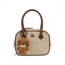 Use our battle tested marketing materials for Vintage Brown Bowling Handbag for Women with Cute Dog Pendant & Adjustable Shoulder Strap