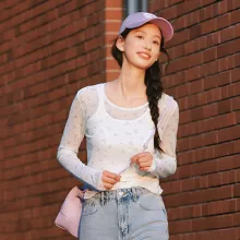 Use our battle tested marketing materials for Women's Sheer Tulle Long Sleeve Slim Fit Top – Chic Layered Look for Spring