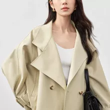Use our battle tested marketing materials for Spring Khaki Double-Breasted Crop Trench for Women