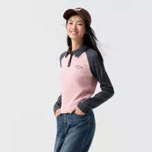 Use our battle tested marketing materials for Color-Blocked Raglan Polo Shirt for Women - Slim Fit Letter-Printed Top