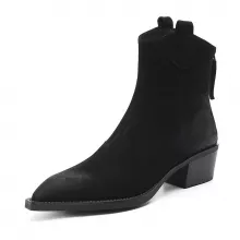 These genuine leather ankle boots are perfect for the spring season, offering versatility and elegance in one sleek package. The pointed toe and chunky heel create a flattering silhouette that pairs perfectly with everything from skirts and dresses to jeans and leggings. Whether you're at work, out on the town, or meeting friends for coffee, these boots are the ideal footwear to complete your outfit. The concise zipper design makes these boots easy to wear, while the high-quality materials ensure both comfort and longevity. The sheepskin insole provides cushioning for all-day comfort, and the rubber sole ensures you stay steady on your feet no matter where you go. Plus, with a 4.5 cm heel, they add just the right amount of height without sacrificing comfort. Embrace the spring season with these Western-inspired ankle boots—a stylish and practical choice for every woman looking to step out in style. Add them to your wardrobe today and experience the perfect combination of fashion and function!