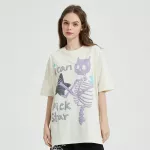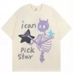 With a classic O-neck collar and short sleeves, this Harajuku-inspired T-shirt offers both comfort and style. The breathable fabric ensures that you stay cool even in the warmest weather, making it your go-to choice for hot days. The skull and skeleton print add a rebellious edge to your outfit, perfect for anyone who loves standing out and expressing their individuality.