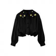 This floral embroidered blouse is the ideal blend of classic elegance and modern style. The loose fit makes it a comfortable choice for all-day wear, while the intricate yellow floral embroidery adds a touch of whimsy to the traditional black shirt. It’s perfect for casual outings, office wear, or even a relaxed dinner with friends. The turn-down collar adds a touch of sophistication, making it versatile enough for both laid-back and more polished looks. Pair it with jeans, skirts, or trousers to create a wide variety of chic outfits that suit any occasion.Perfect for Every Occasion