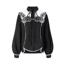 Use our battle tested marketing materials for Vintage Fawn Embroidered Black Blouse with Detachable Collar for Women