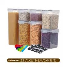 Looking for a smart and stylish way to organize your pantry and kitchen? This 7-piece food storage container set is the perfect solution! Designed to help you keep snacks, cereals, and ingredients fresh, these durable containers feature leak-proof seals to prevent spills and keep your food safe. Whether you need to store candy, cereal, or snacks, this set has everything you need to stay organized while preserving the freshness of your food.