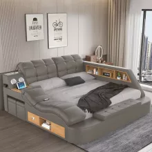 Not only does this bed frame bring unparalleled comfort with its adjustable massage feature, but it also offers an immersive entertainment experience with high-quality sound and charging convenience. The added storage space helps you keep everything tidy while enhancing the overall functionality of your bedroom. Ideal for those who value both style and practicality, this bed is perfect for anyone looking to enhance their sleep and relaxation experience with modern technology.