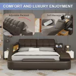 Experience the ultimate in relaxation and innovation with the Luxury Smart King Bed Frame. This multifunctional marvel not only provides a stylish modern aesthetic but also integrates advanced features designed for convenience, entertainment, and comfort. With built-in massage functionality, Bluetooth speakers, a USB charging station, and ample storage space, this bed frame is more than just a place to sleep—it’s a smart home upgrade.