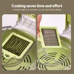 The vegetable chopper is designed to simplify your cooking process, saving you both time and effort. With its versatile cutting options, you can create beautiful, uniform pieces of your favorite vegetables with minimal effort. The sharp, stainless steel blades ensure that you get smooth, precise cuts every time. Plus, the built-in draining basket makes washing and rinsing vegetables effortless, while the included brush ensures quick and easy cleaning after every use.