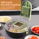 What truly makes this chopper stand out is its versatility. With 8 different blades, you can handle all your chopping, dicing, and shredding needs in one compact tool. The included hand guard provides extra safety, making it a worry-free addition to your kitchen. Additionally, the built-in draining basket and eco-friendly materials make it both convenient and sustainable. Whether you're an amateur cook or a seasoned chef, this vegetable chopper is designed to save you time and effort while elevating your cooking skills.