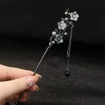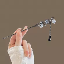 Elevate your hairstyle with this exquisite metal hair stick, designed to bring a touch of elegance and sophistication to any look. Inspired by traditional Chinese Hanfu aesthetics, this stunning hairpin features a delicate ink flower design, shimmering tassels, and elegant black beads. Whether you're dressing up for a special occasion or adding a refined touch to your everyday look, this hair stick is the perfect accessory to enhance your beauty.