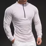 This compression shirt stands out because of its combination of performance and comfort. The high neck with a zipper allows you to control airflow, making it perfect for both intense indoor workouts and cooler outdoor runs. The compression fit not only supports your muscles but also helps improve circulation, reducing muscle fatigue and speeding up recovery. The breathable polyester fabric keeps you dry by wicking away sweat, ensuring you stay focused on your performance. The shirt’s stylish design makes it suitable for both training and casual wear, ensuring that you look and feel great while pushing your limits.