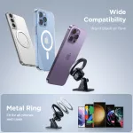 - Universal Compatibility – The magnetic mount works seamlessly with iPhone 12, 13, 14, and other Android phones. Plus, it includes two metal rings to make it compatible with phones that don't have built-in magnetic cases.