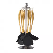 What sets this cooking tool set apart is its combination of elegance and practicality. The luxurious gold finish adds a touch of sophistication to your kitchen, while the high-quality materials ensure that each utensil performs perfectly. The set is versatile, covering everything from preparing to serving, and it's gentle enough to use with delicate non-stick cookware. Whether you're cooking daily meals or preparing a special dish, these tools will make the experience both functional and stylish.