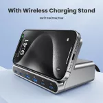- Wireless Charging for Convenience: The built-in **wireless charging stand** supports **15W, 10W, 7.5W, and 5W wireless charging** for your compatible devices, including smartphones and wireless earbuds. Simply place your phone on the pad and let the charger work its magic—no cables needed.