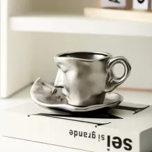 Use our battle tested marketing materials for Silver Ceramic Kissing Couple Coffee Mug with Tray
