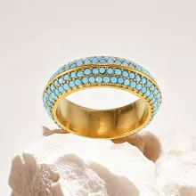 This zircon round ring offers a perfect blend of beauty, durability, and style. The 18k gold plating not only adds a rich, luxurious appearance but also ensures lasting shine. The high-quality stainless steel construction means that this ring is resistant to corrosion and wear, ensuring it stays looking pristine for years to come.The vibrant zircon stone is expertly cut to create a stunning effect that will attract compliments wherever you go. The unique tension mount setting allows the stone to appear as though it is floating, offering a modern and chic vibe. Ideal for those who want a bold and trendy statement piece, this ring is designed to make you feel confident and glamorous.
