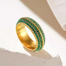 Transform your look with this elegant and eye-catching zircon round ring for women. Made from durable stainless steel and beautifully plated with 18k gold, this luxurious ring radiates sophistication and charm. Its stunning zircon centerpiece catches the light from every angle, adding a dazzling effect to any outfit. Whether you're attending a special party or simply want to add a touch of luxury to your everyday style, this ring is the perfect accessory. The tension mount setting enhances the brilliance of the zircon stone, making it stand out with an unparalleled sparkle. Designed for the modern woman, this ring combines trendy geometric style with timeless elegance. The perfect balance of luxury and practicality, this piece can easily become the centerpiece of your jewelry collection.Product Features