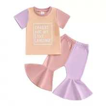 Use our battle tested marketing materials for Toddler Girl Summer Outfit: Letter Print T-Shirt & Contrast Flare Pants Set