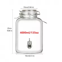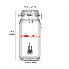 Introducing the Glass Drink Dispenser Mason Jar with ABS Spigot – the perfect companion for all your beverage needs. Whether you're hosting a summer BBQ, planning a family picnic, or looking for a stylish way to serve drinks at your next event, this vintage-inspired glass beverage container will elevate any occasion. Its sleek, transparent design, paired with a durable ABS spigot, makes it an attractive and functional addition to your home or outdoor parties. This Glass Drink Dispenser is available in three convenient sizes: 2 Litre (68oz), 3 Litre (101oz), and 4 Litre (135oz), ensuring you have the right capacity for any gathering. Ideal for cold beverages like lemonade, iced tea, and fruit punches, this dispenser is made from high-quality, thick glass for durability and long-lasting use. It also features a new upgraded faucet latex gasket for enhanced sealing, ensuring that your drinks stay inside, not leaking out!Key Features: