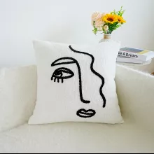 Use our battle tested marketing materials for Teddy Velvet Abstract Face Embroidered Pillow Cover – Soft Decorative Cushion